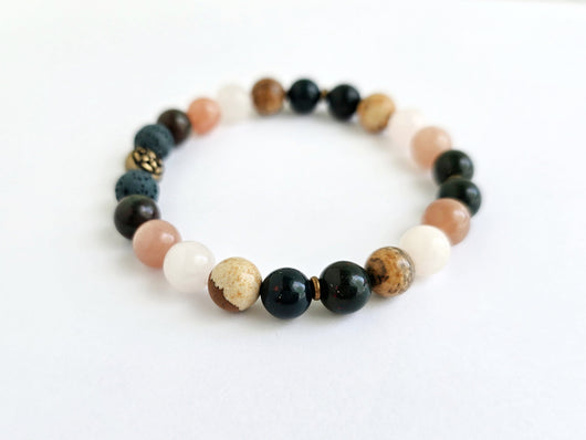 This bracelet is 7 1/4 inch, stretch elastic and handmade with love and mindfulness in Minnesota. It comes in a box with a card that describes the meaning of the bracelet with the stones.